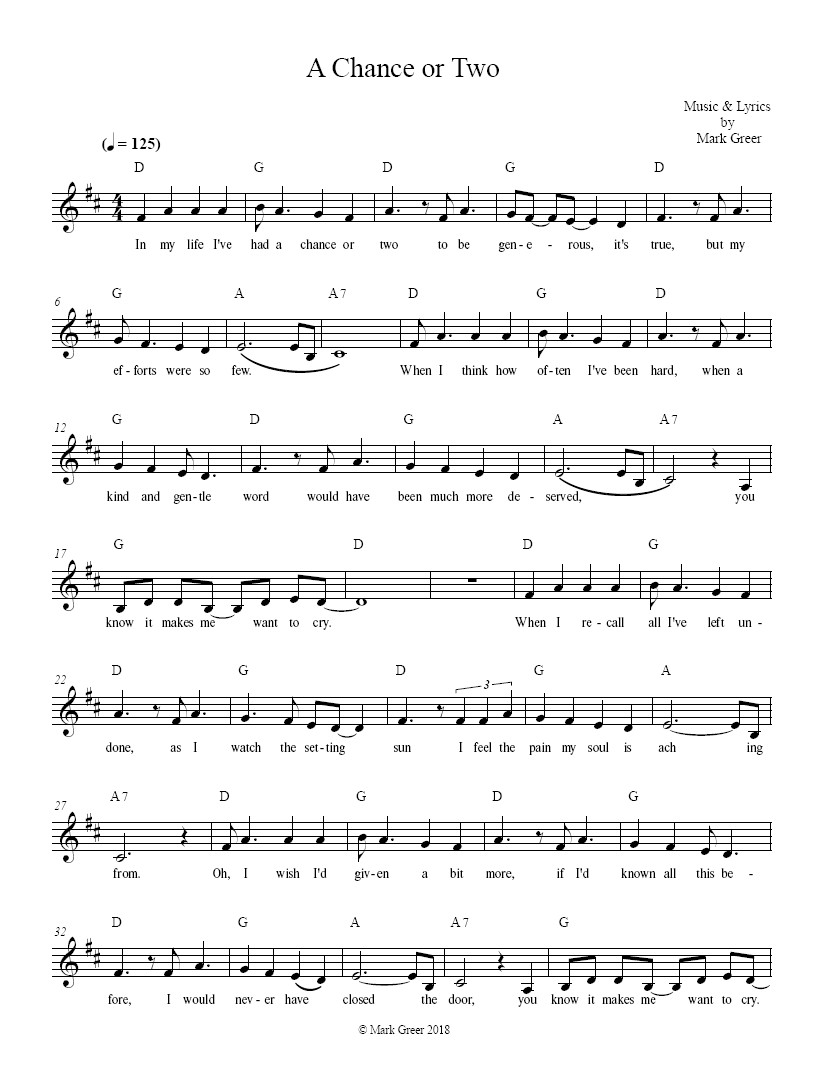 “A Chance or Two” is the title song from the album, “A Chance or Two”. This song considers how God values our best desires, even though we may not have been able to bring those good thoughts and deeds to life.