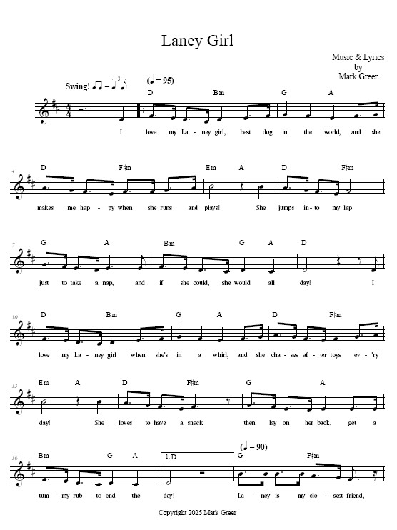 This is not a religious song, but it is a great children’s song about the best dog ever! Dedicated to my dog, Laney, who truly is the greatest dog in the world!